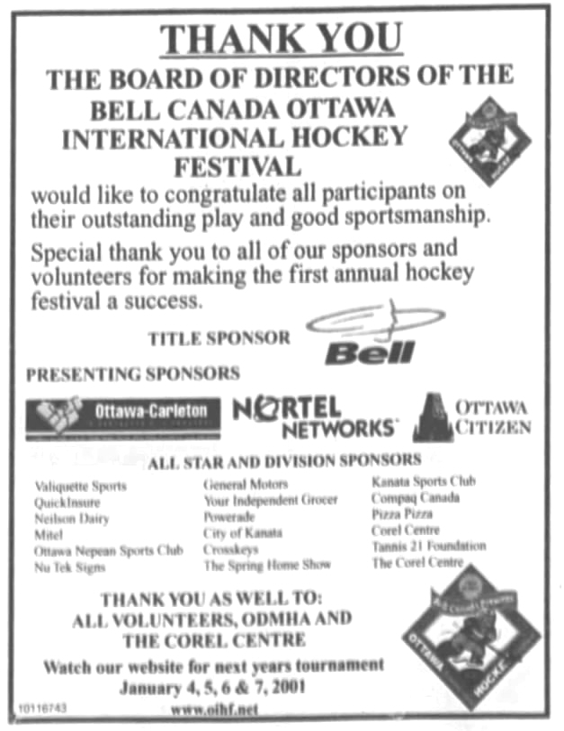 Initially modelled after the renowned peewee hockey tournament in Quebec City, the very first Bell Canada Ottawa International Hockey Festival took place from Jan. 6-9, 2000 and featured only the atom age division.