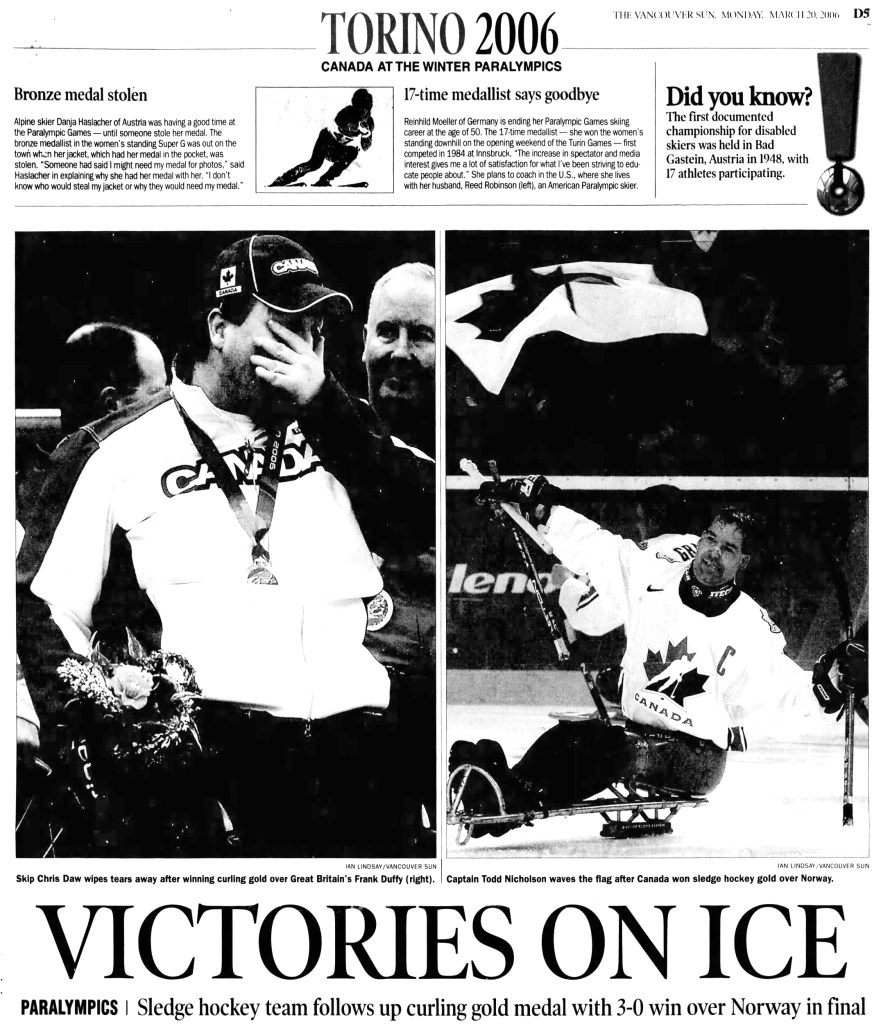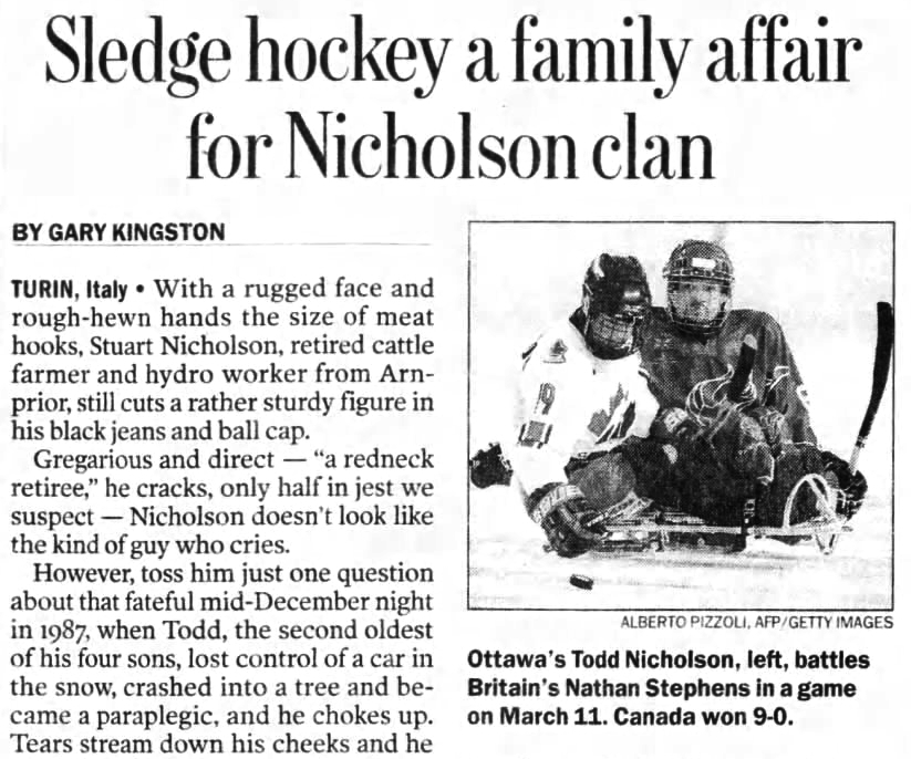 The Torino 2006 Paralympic Winter Games produced the biggest prize of Todd Nicholson’s career, but there were very serious doubts whether the Team Canada captain would even make it there.