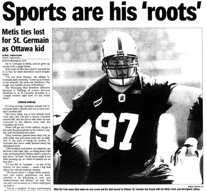 “I found out that I had a lot of relatives up there and they had been following me during my career in the CFL,” St. Germain told Darrell Davis of the Regina Leader-Post in 2002.