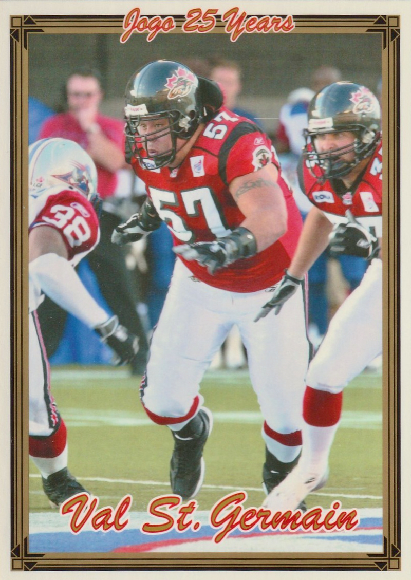 Val St. Germain was one of the most durable offensive linemen in Canadian Football League history. The 14-year CFL veteran’s total of 204 regular season appearances places him in the top 1% of most games played all-time, despite practicing one of football’s most unforgiving positions.